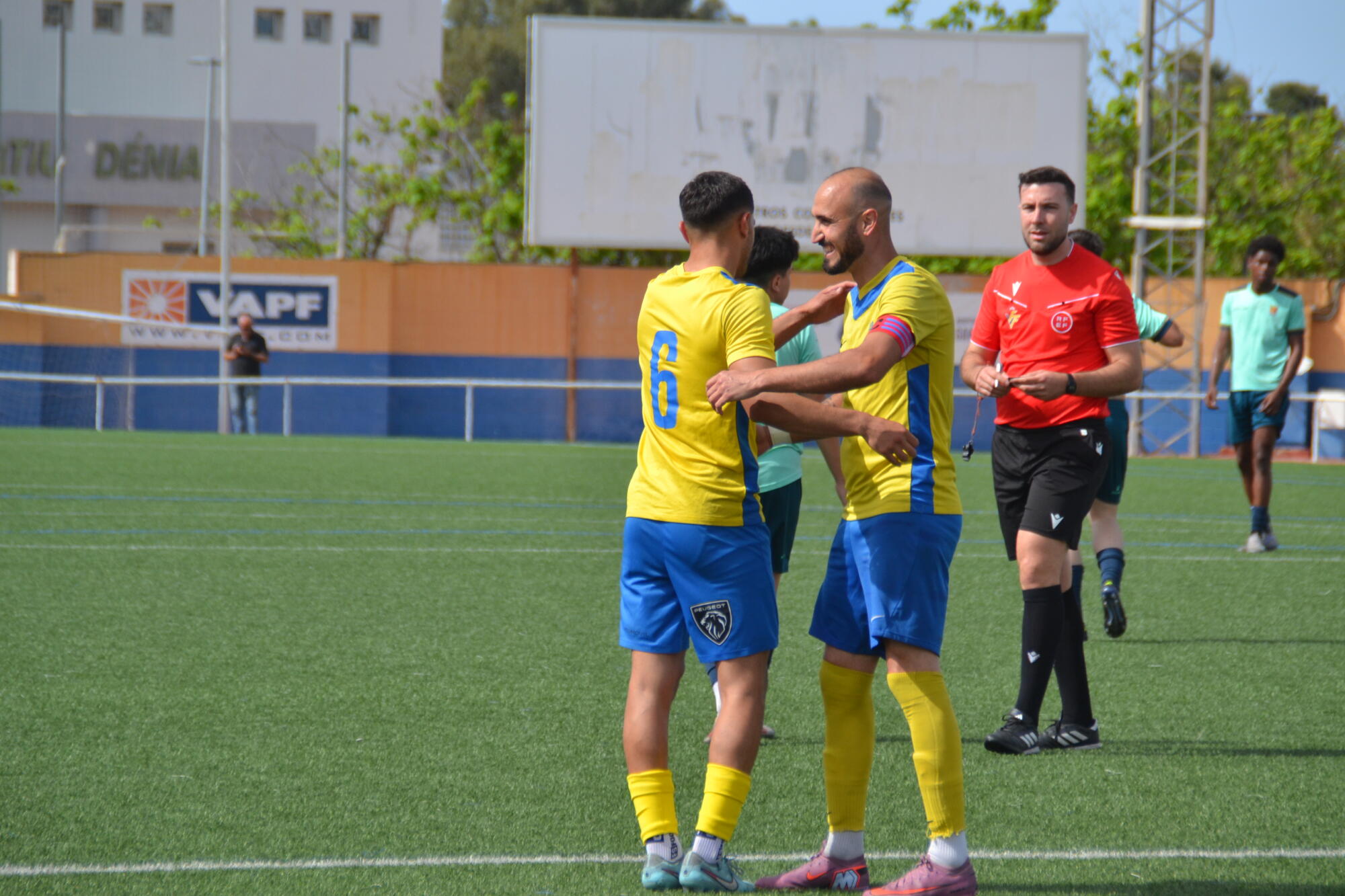 Las llegadas al área visitante fueron constantes y seguían sucediéndose sin cesar. En el minuto 33, Zazo aprovechó un error defensivo rival y amplió la ventaja a 2-0. Con este gol, el equipo visitante se desmoronó por completo, y el CD Dénia siguió aprovechando la debilidad defensiva de La Mancomunitat. Panucci, el máximo goleador del grupo y de la categoría, hizo el 3-0 antes del descanso, dejando muy claro que la victoria sería cómoda.