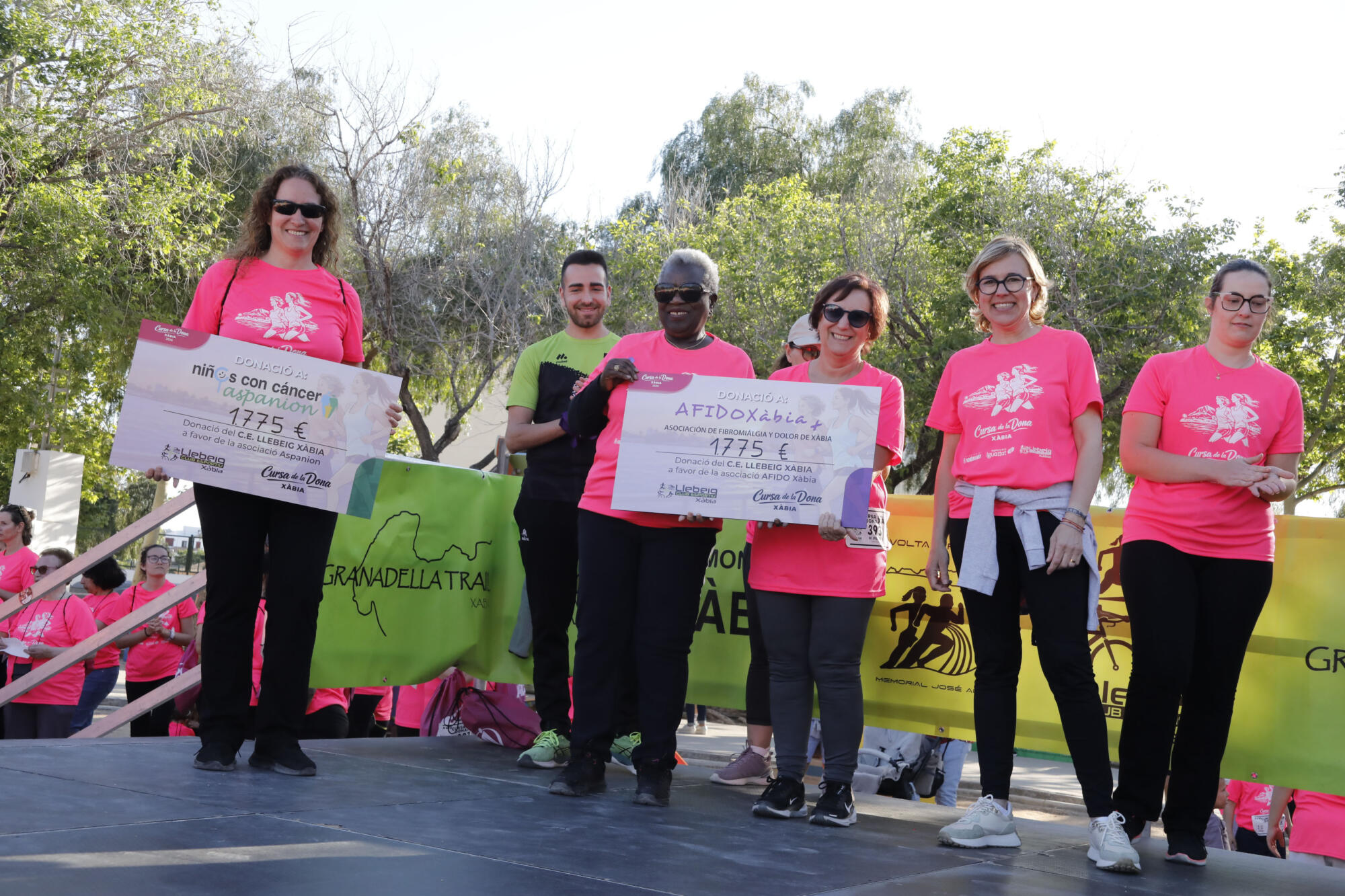 Finalmente, la Cursa de la Dona logró recaudar 3.550 euros, a destinar, a partes iguales para Aspanion, Asociación de Madres y Padres de Niñas y Niños con Cáncer, y Afido, la Asociación para la Fibromialgia y el Dolor de Xàbia.
