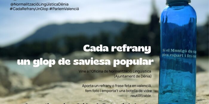 Sociedad Cada refrán cuenta: Dénia impulsa una campaña para preservar el valenciano y el patrimonio oral Las personas que compartan dichos en valenciano recibirán una botella de vidrio reutilizable con frases hechas de Dénia 4/11/2025 • 11:50 • Míriam Pagán López